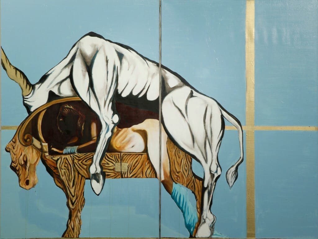 Desperate to satiate her lust, Pasiphae enlisted the help of Daedalus, the master craftsman. Together, they constructed a wooden cow, so lifelike in appearance that even the most discerning eye would be fooled. Pasiphae climbed inside the contraption and waited for the bull to approach.