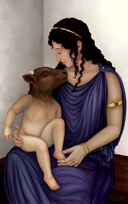 One year, however, the gods were not pleased with his offering, and they caused the queen of Crete, Pasiphae, to fall madly in love with the magnificent bull that was meant for sacrifice. She could not resist its allure and longed to be with it.